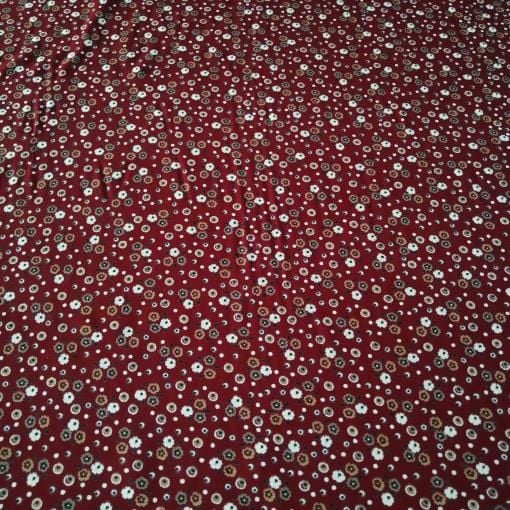 Bordo Japon Çiçekleri Viskon Kumaş